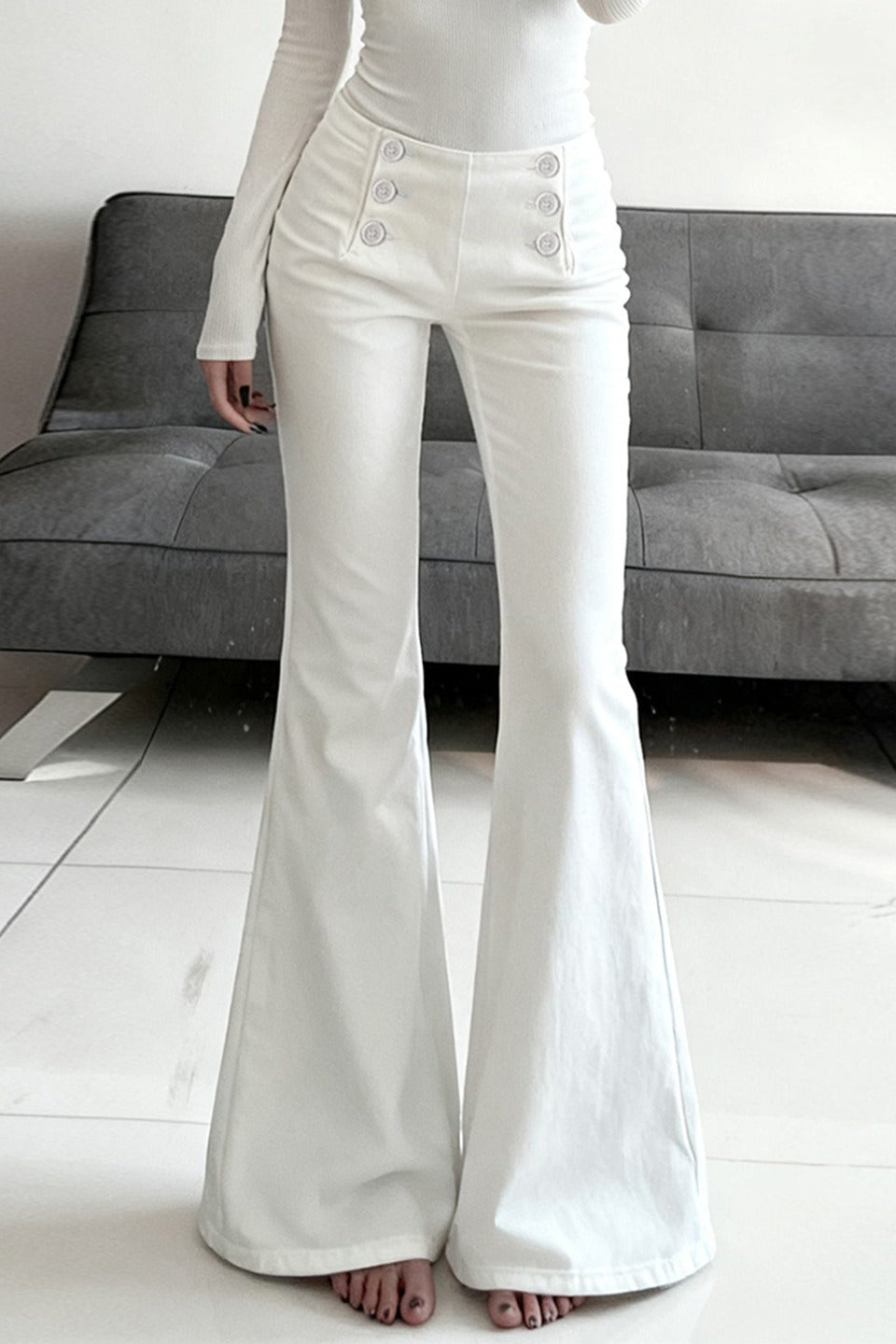 • Clothing Type: Bootcut Pants • Length: Full Length • Waist Type: Low Waist • Details: Solid Color • Composition: Cotton, Viscose