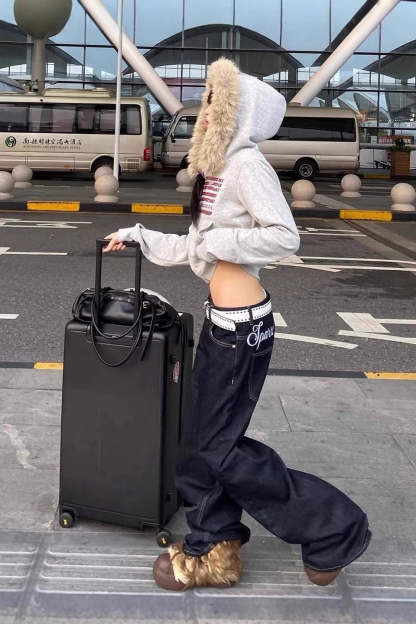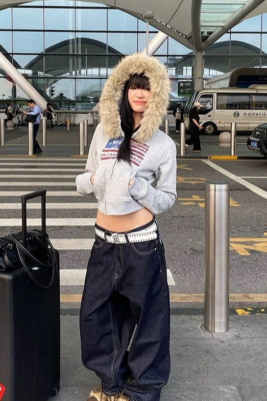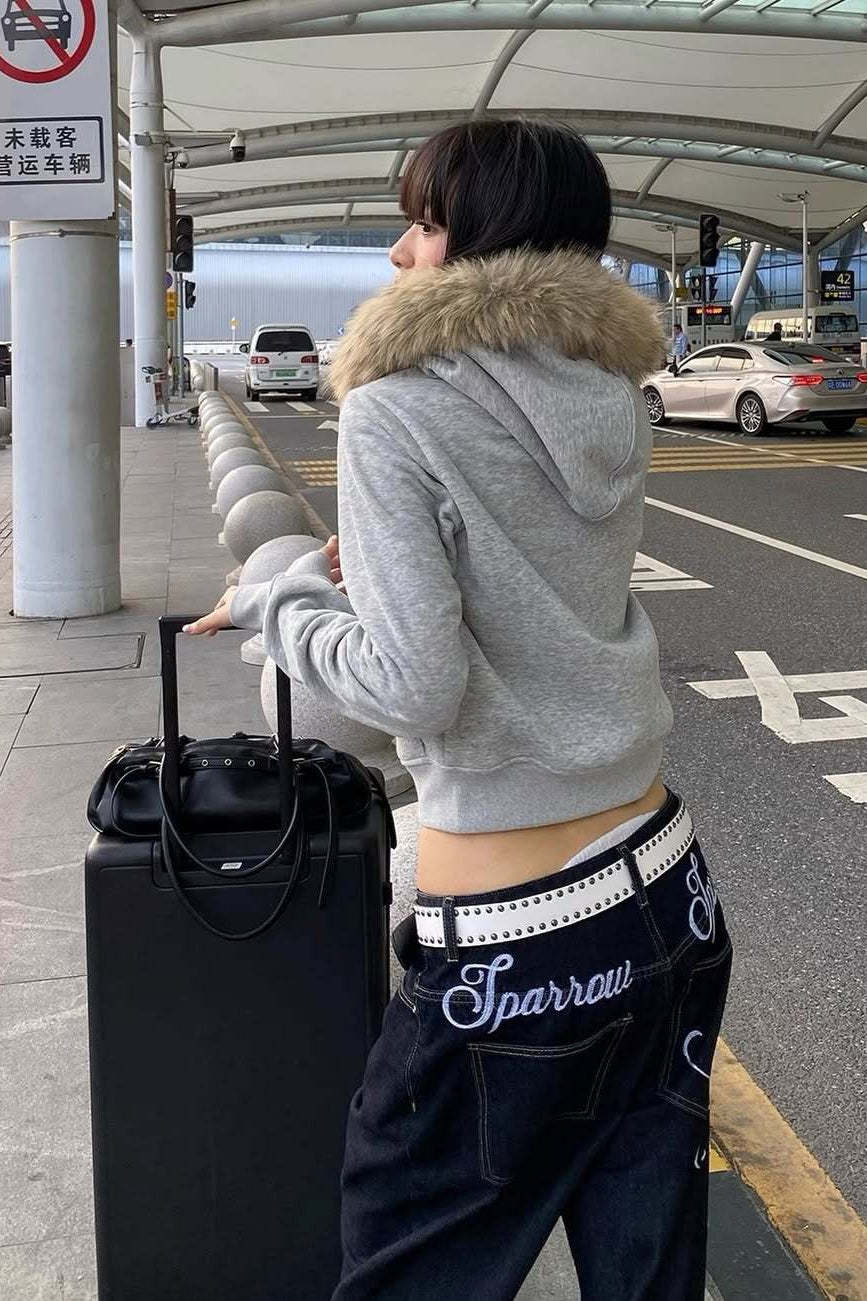 • Fit: Loose Fit • Neckline: Round Neck • Sleeve Type: Regular sleeve • Sleeve Length: Long Sleeve • Details: Fur Collar Patchwork, Cropped • Composition: Polyester