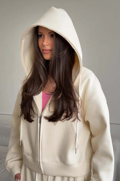• Sleeve Type: Long Sleeve • Sleeve Length: Long Sleeve • Details: Drawstring, Zipper, Pockets • Composition: Cotton, Polyester